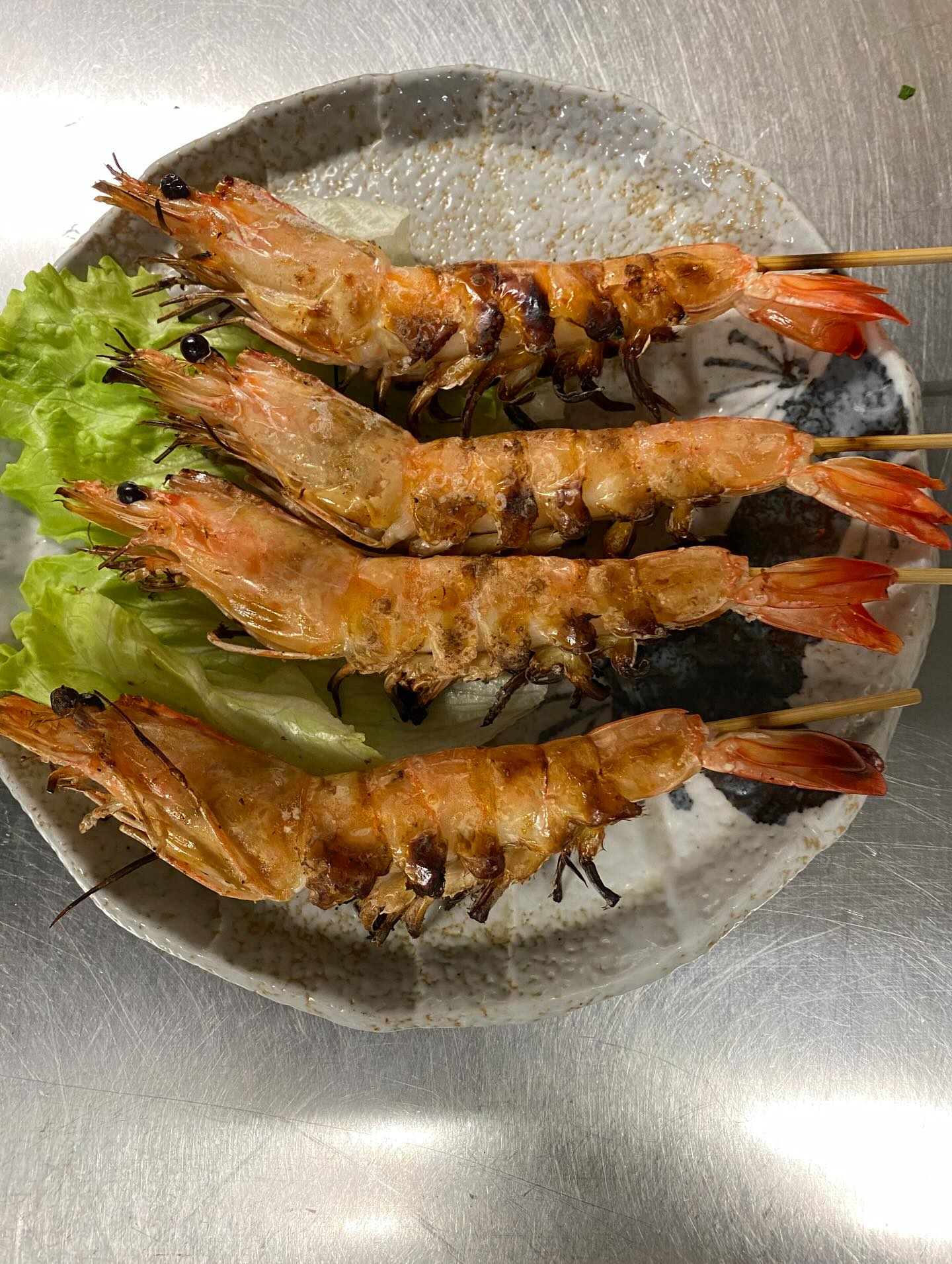 殻ごと頭ごと食べれる天使の海老の塩焼きです。